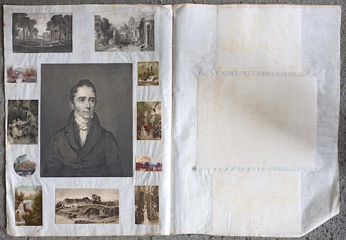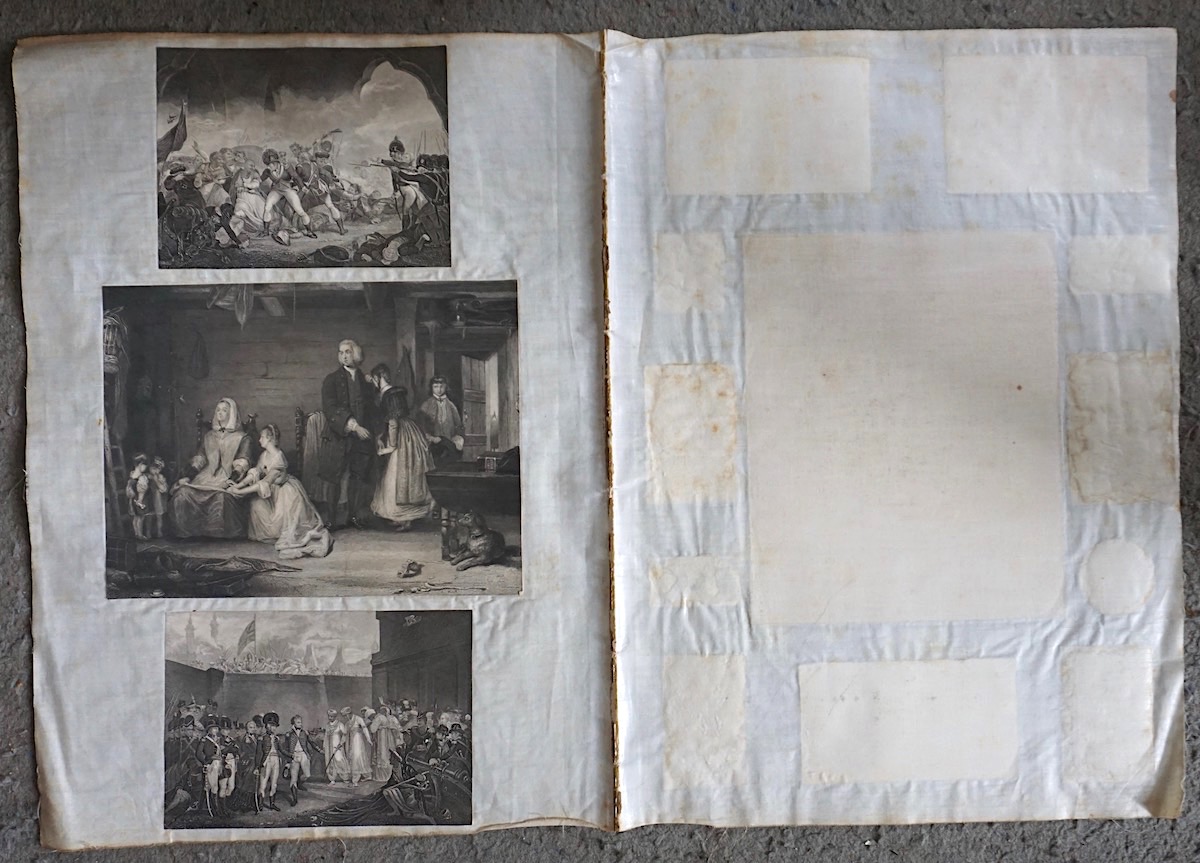 15 Antique Engraving Prints, 1840, 41,7 x 29,5 cm. Prints attached to silk cloth.