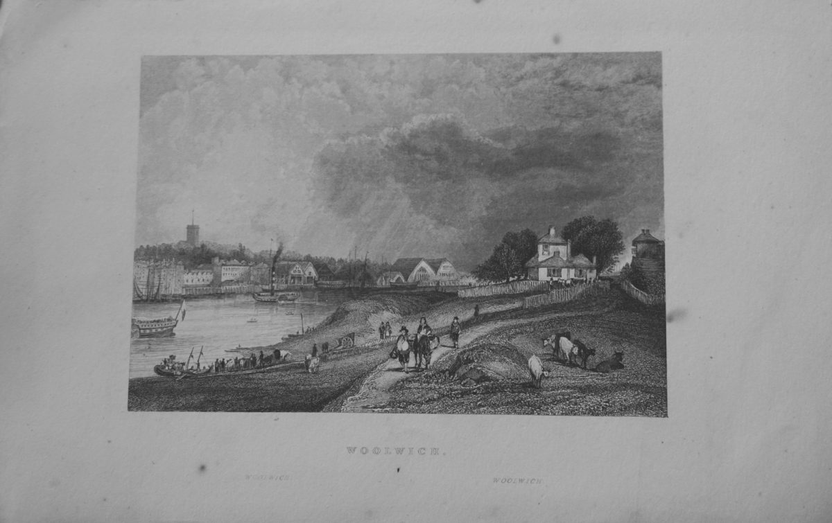 1828, old engraving print, Wolwich, 9×6 inc. b/n. Good condition.