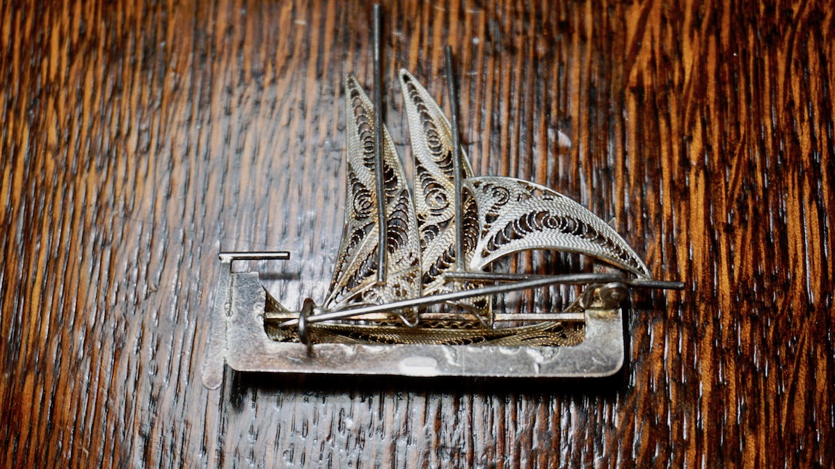 Antique 925 silver boat brooch, credit Antiche Curiosità©