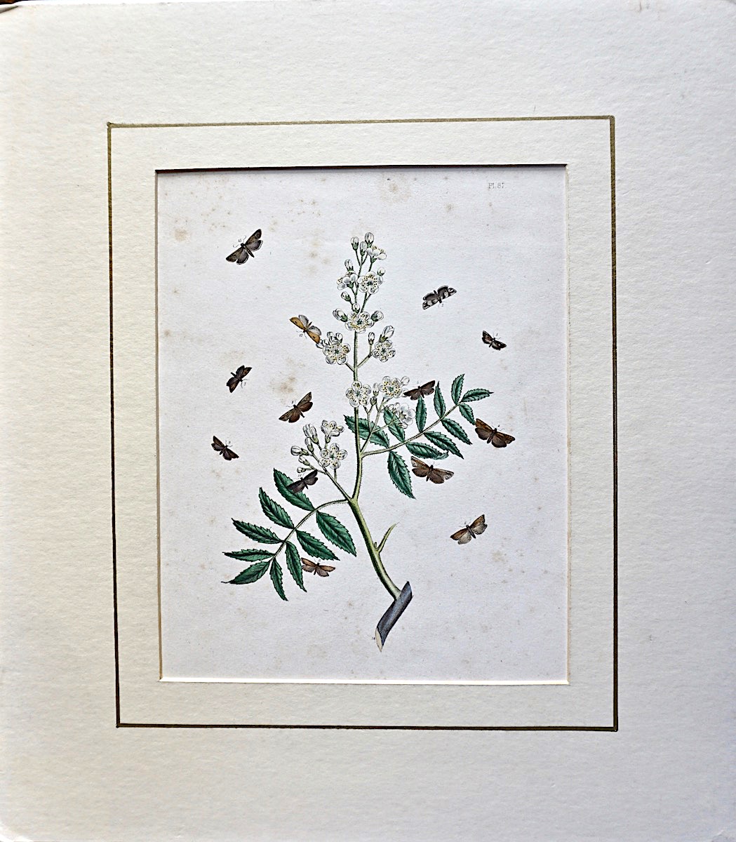 Antique Botanical Print, 1840 ca., flowers and butterflies, cm. 40 x 35.