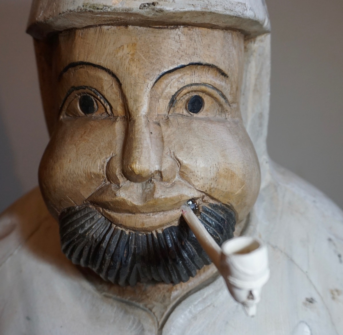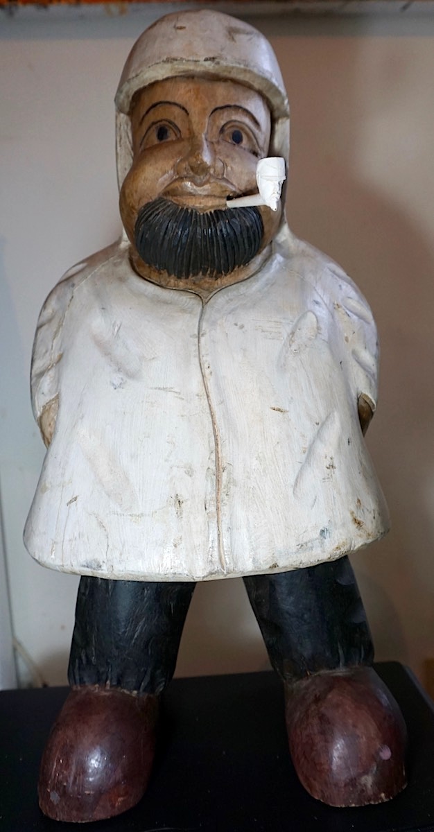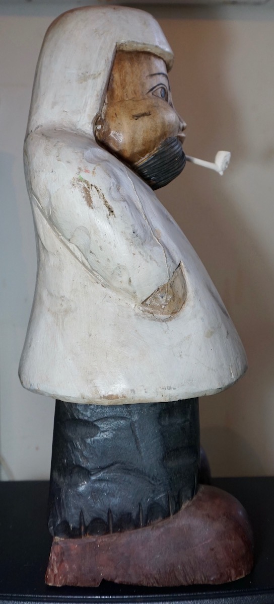 Antique Burmese Handmade Wooden Sculpture, 1920-30, with original clay pipe, 29 x 30 x 52 cm. 8 Kg. ca.