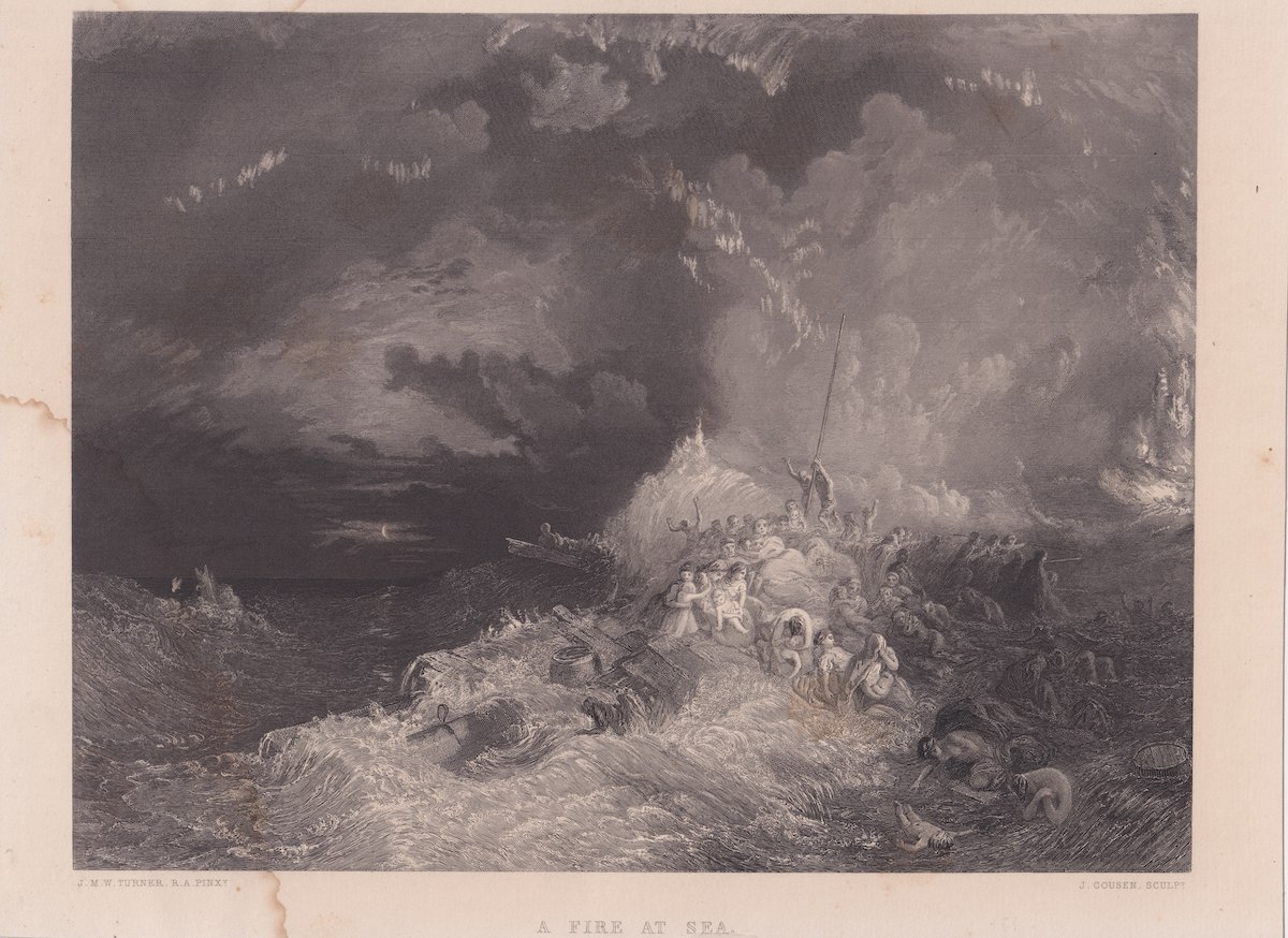 Antique Engraving Print, A fire at sea, 1897, credit Antiche Curiosità©