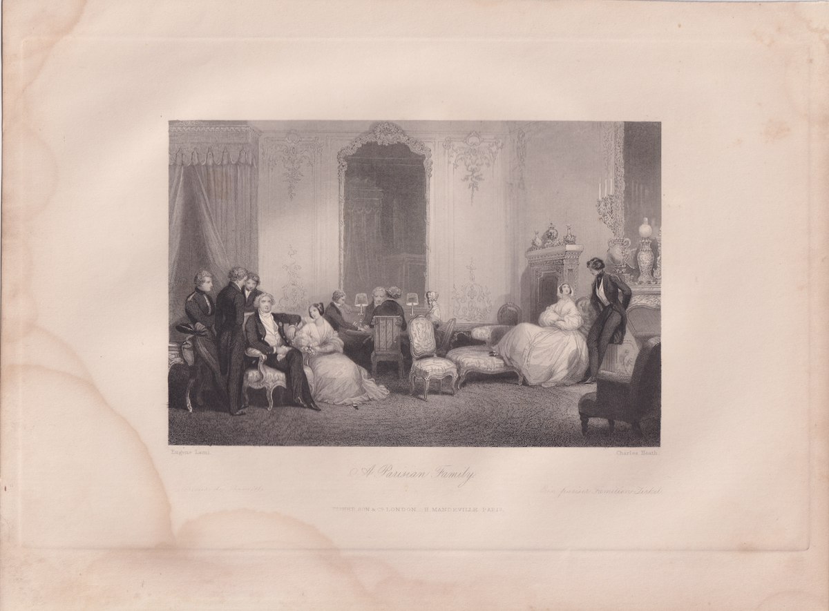 Antique Engraving Print, A Parisian Family, 1840