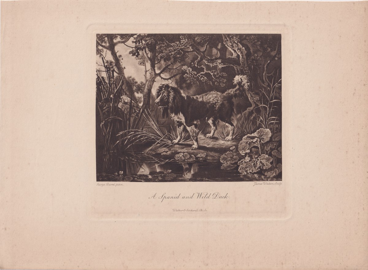 Antique Engraving Print, A Spaniel and Wild Duck, 1858 ca. credit Antiche Curiosità©