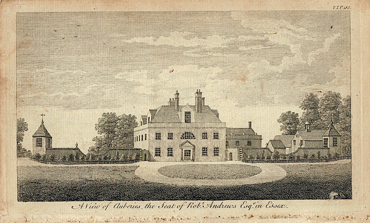 Antique Engraving Print, A View of Auberies, the Seat of Rob. Andrews, in Essex, 1770, cm. 21,5 x 13.