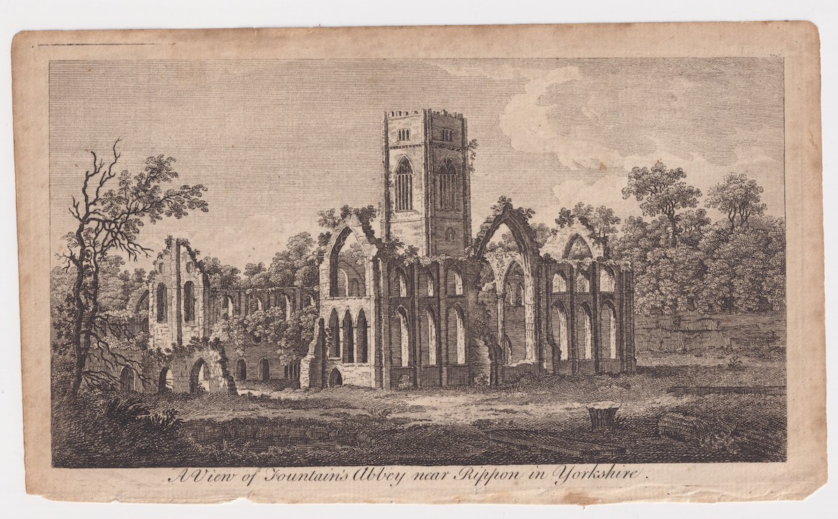 Antique Engraving Print, A View of Fountain’s Abbey near Rippon in Yorkshire, 1770, credit Antiche Curiosità©
