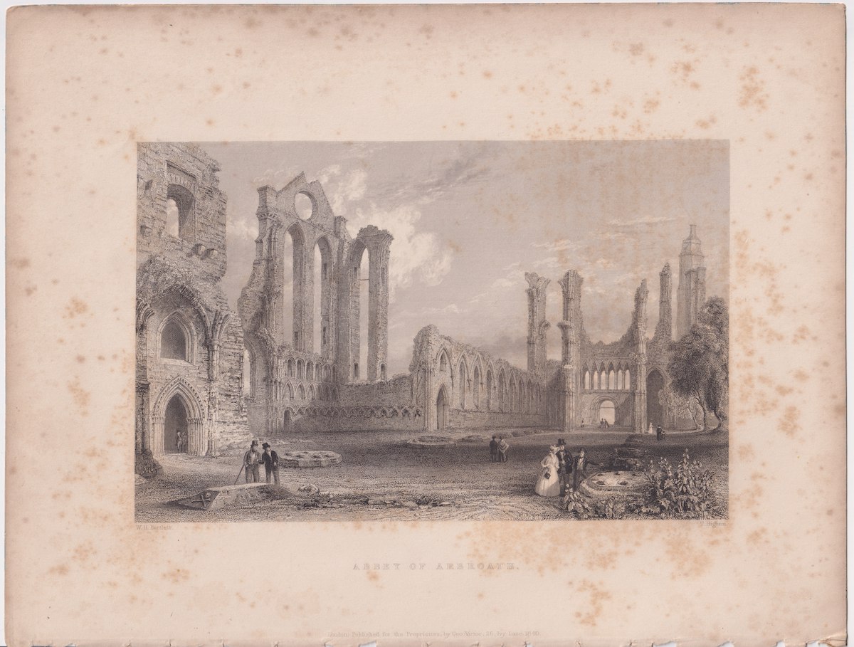 Antique Engraving Print, Abbey of Arbroath, 1840, credit Antiche Curiosità©