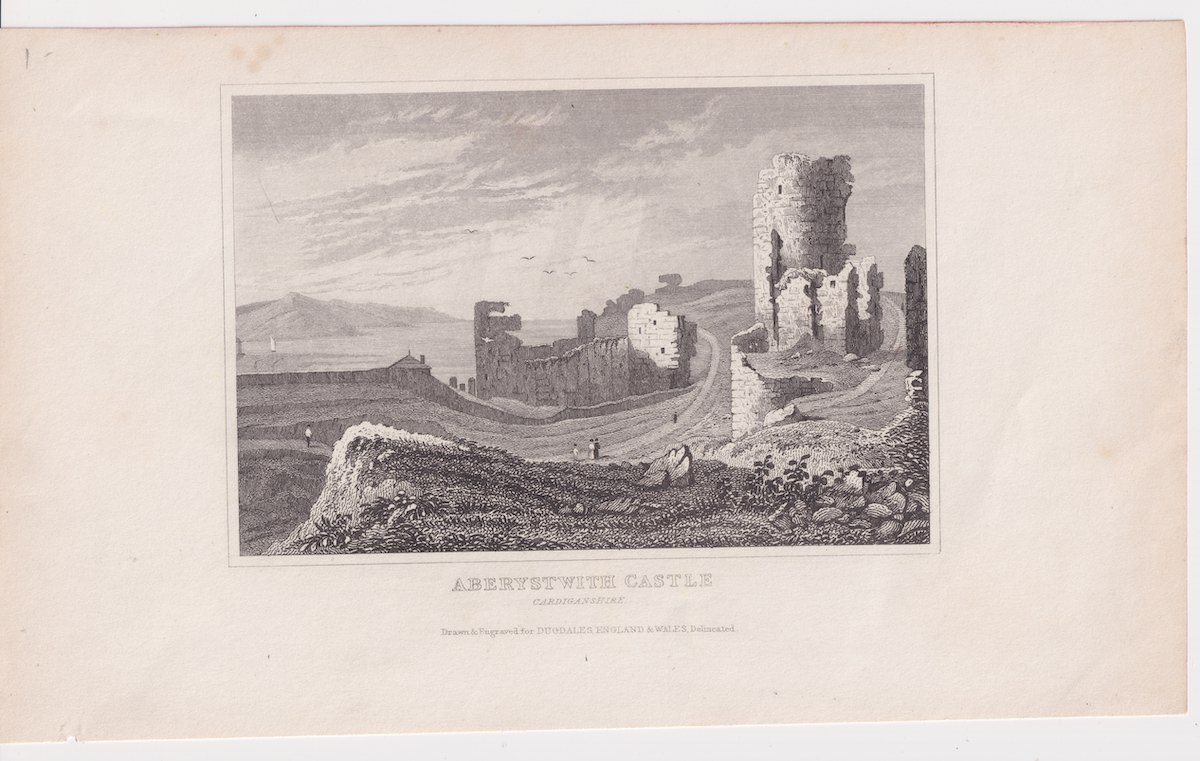 Antique Engraving Print, Aberystwith Castle, 1830, 21.4 x 12.3 cm.