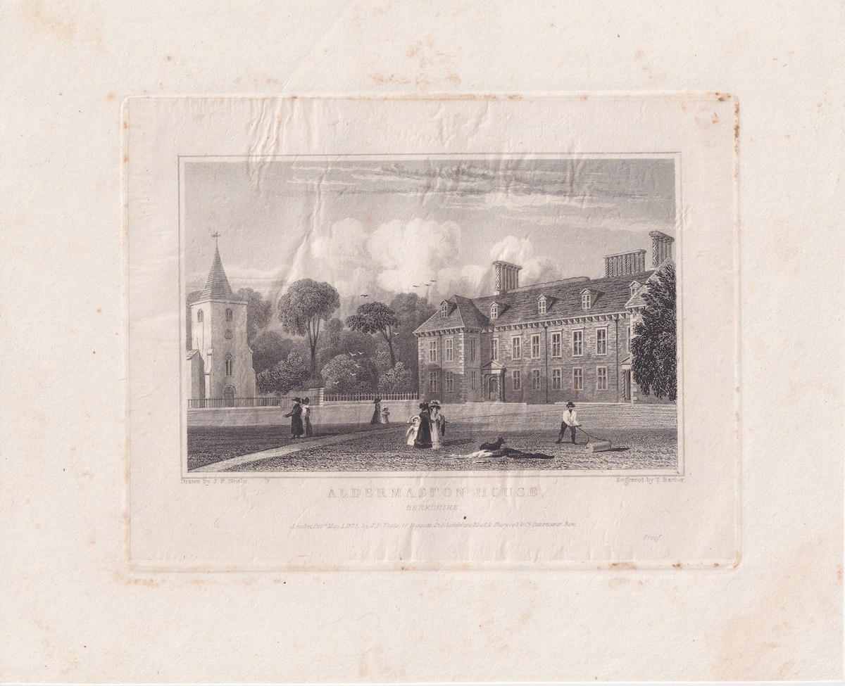 Antique Engraving Print, Aldermaston House, 1828, 22.2 x 18 cm.