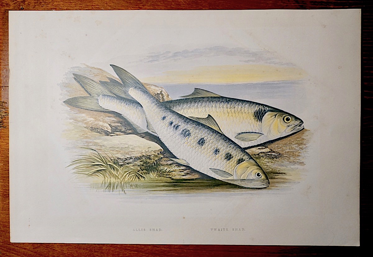 Antique Engraving Print, Allis Shad, Twaite Shad, 1879, cm. 37 x 25. Rare.
