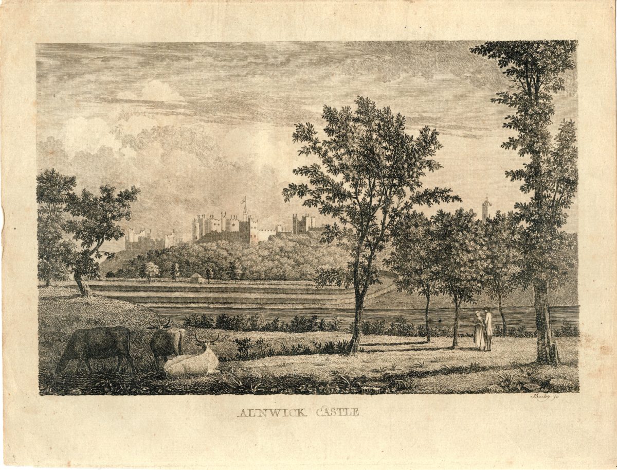 Antique Engraving Print, Alnwick Castle, 1750 ca., credit Antiche Curiosità©