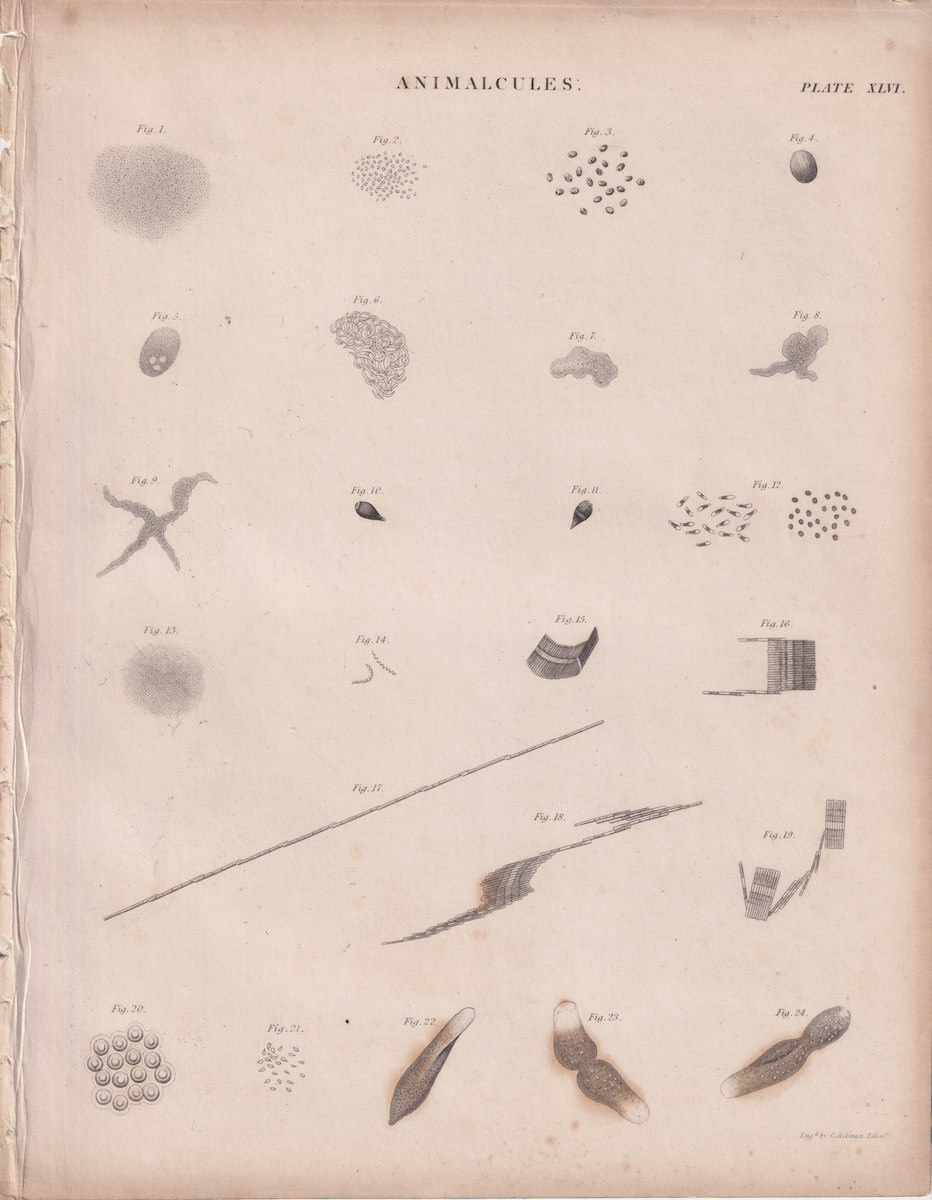 Antique Engraving Print, Animalcules, 1810, 21.6 x 27.8 cm.