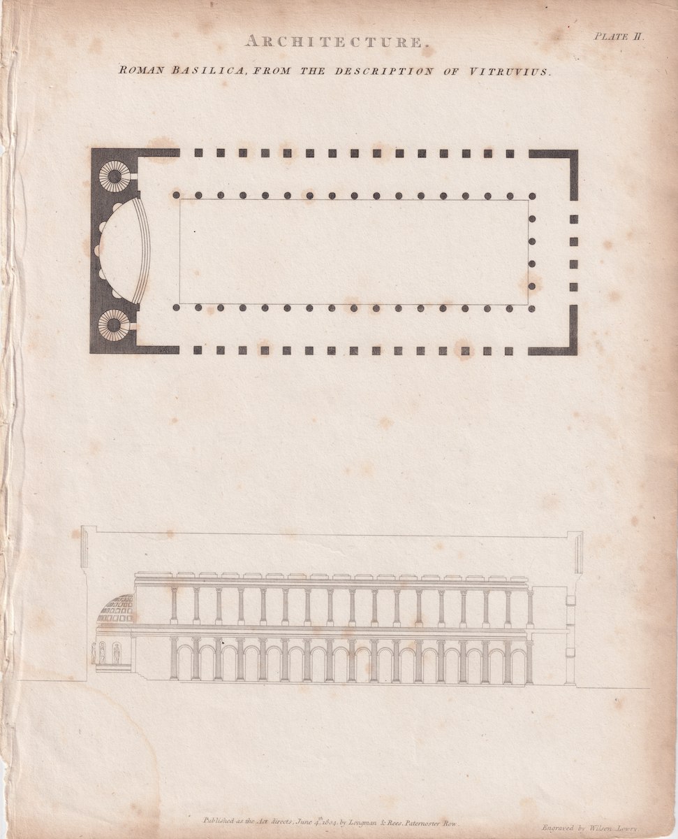 Antique Engraving Print, Architecture, Roman Basilica, 1804, 21 x 26.5 cm.