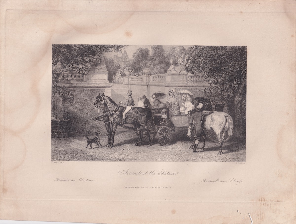 Antique Engraving Print, Arrival at the Chateau, 1836, credit Antiche Curiosità©