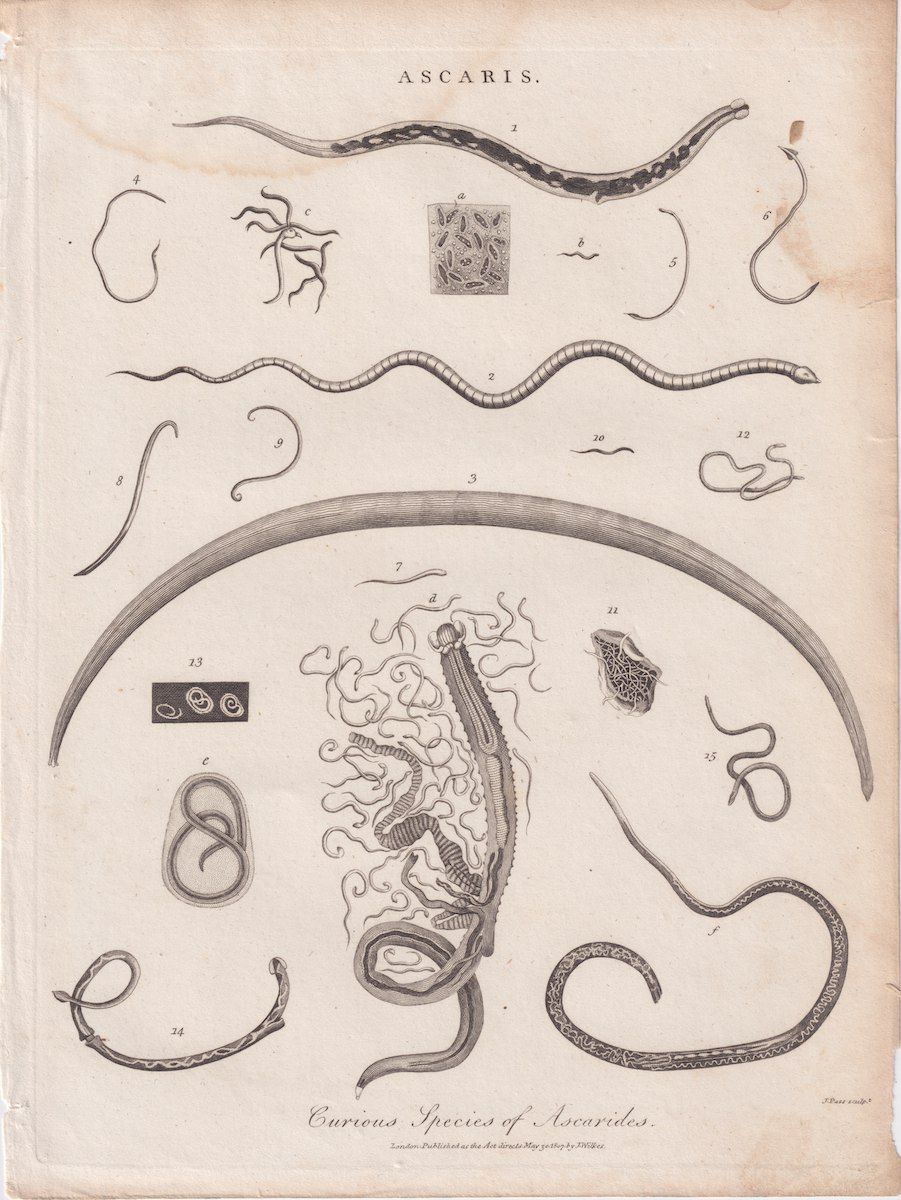 Antique Engraving Print, Ascaris, 1807, credit Antiche Curiosità©