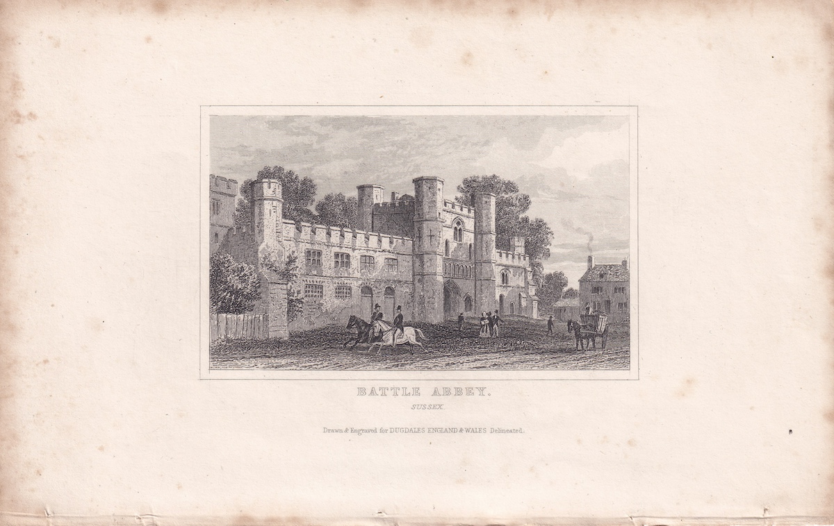 Antique Engraving Print, Battle Abbey, 1830 ca., credit Antiche Curiosità©