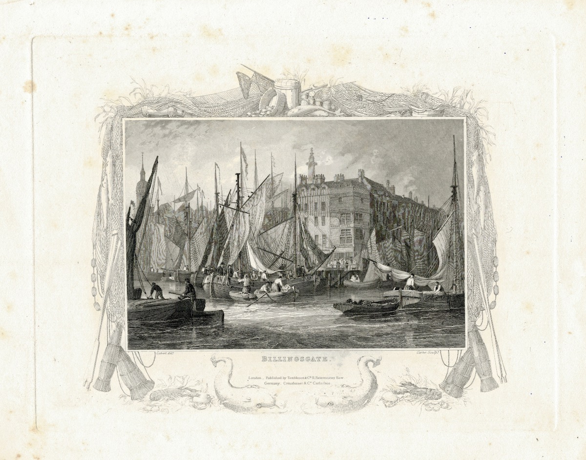 Antique Engraving Print, Billingsgate, 1830, credit Antiche Curiosità©