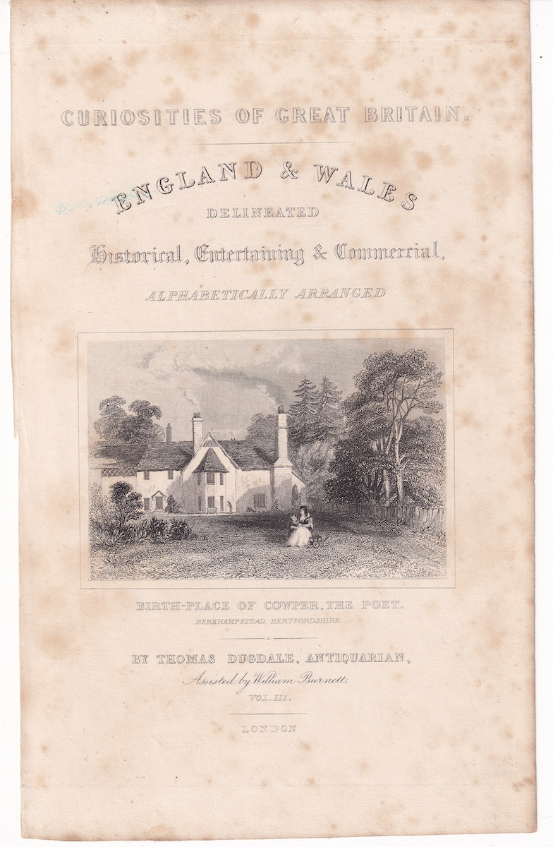 Antique Engraving Print, Birth-Place, 1835, credit Antiche Curiosità©