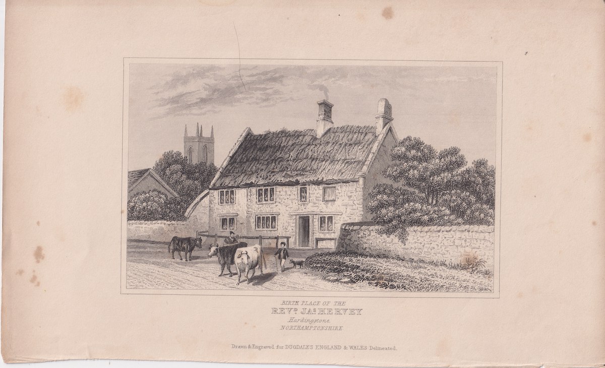Antique Engraving Print, Birth Place of Rev. d Ja.s Hervey, 1840, credit Antiche Curiosità©