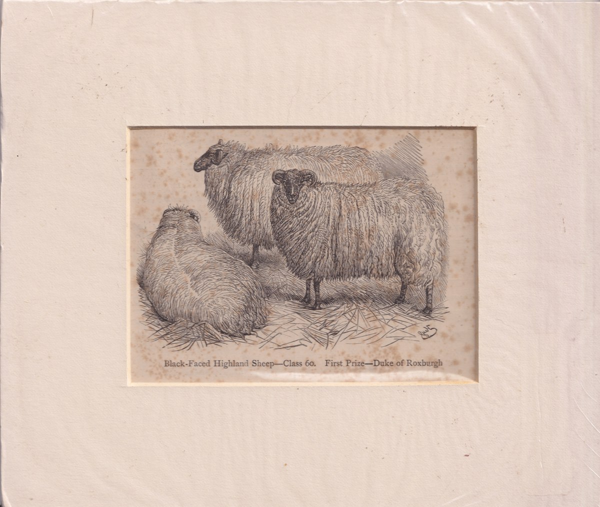 Antique Engraving Print, Black-faced Highland Sheep, 1860 ca. credit Antiche Curiosità©