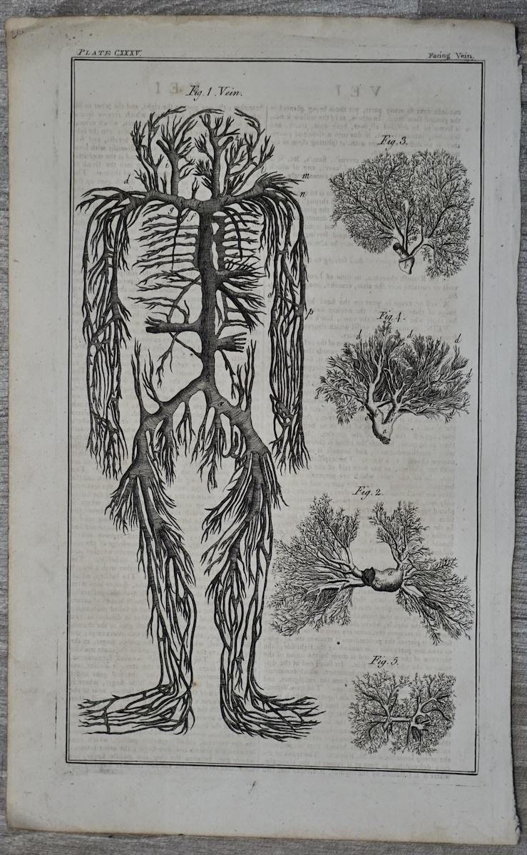 Antique Engraving Print, Blood-system, Vein, 1739 ca. 22.3 x 35.5 cm.