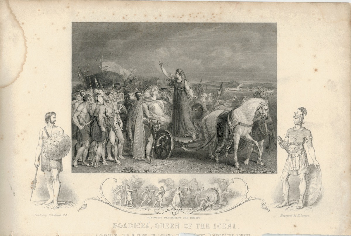 Antique Engraving Print, Boadicea, Queen of the Iceni, engraved by H. Lemon, cm. 26,3 x 17, 1853.