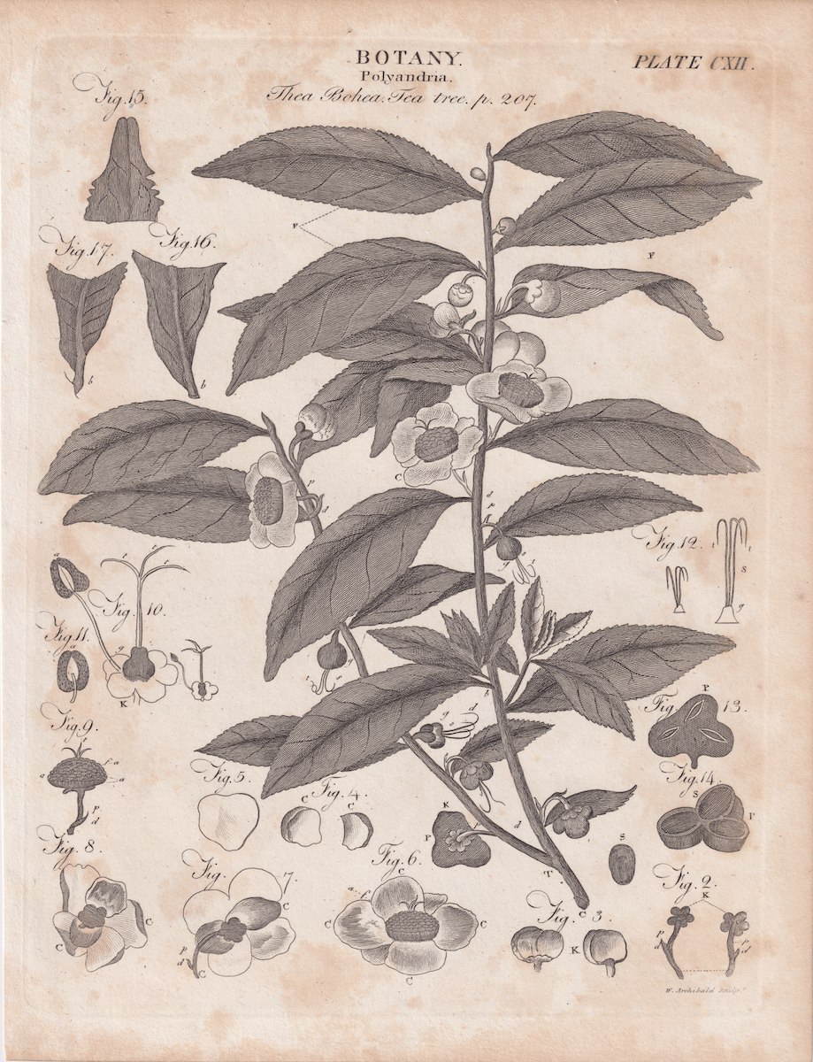 Antique Engraving Print, Botany, Tea, 1809 ca. credit Antiche Curiosità©