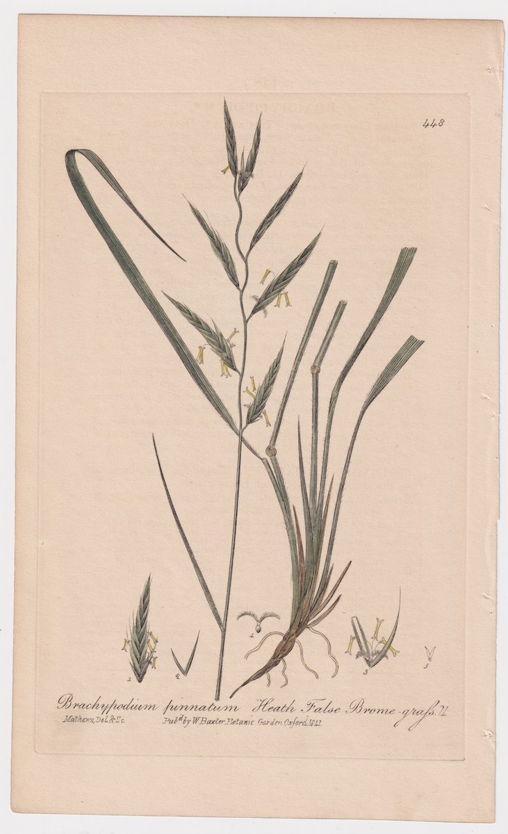 Antique Engraving Print, Brachypodium pinnatum, 1841