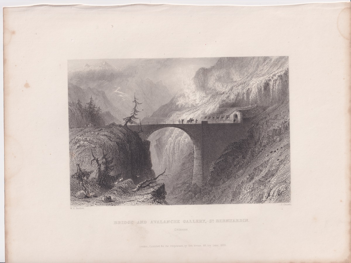 Antique Engraving Print, Bridge… St. Bernardin, 1835, credit Antiche Curiosità©