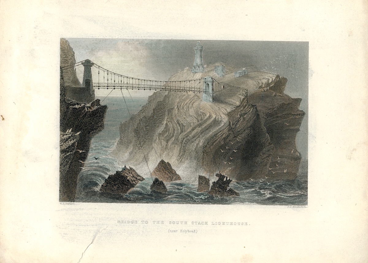 Antique Engraving Print, Bridge to the South Stack Lighthouse, 1842, credit Antiche Curiosità©