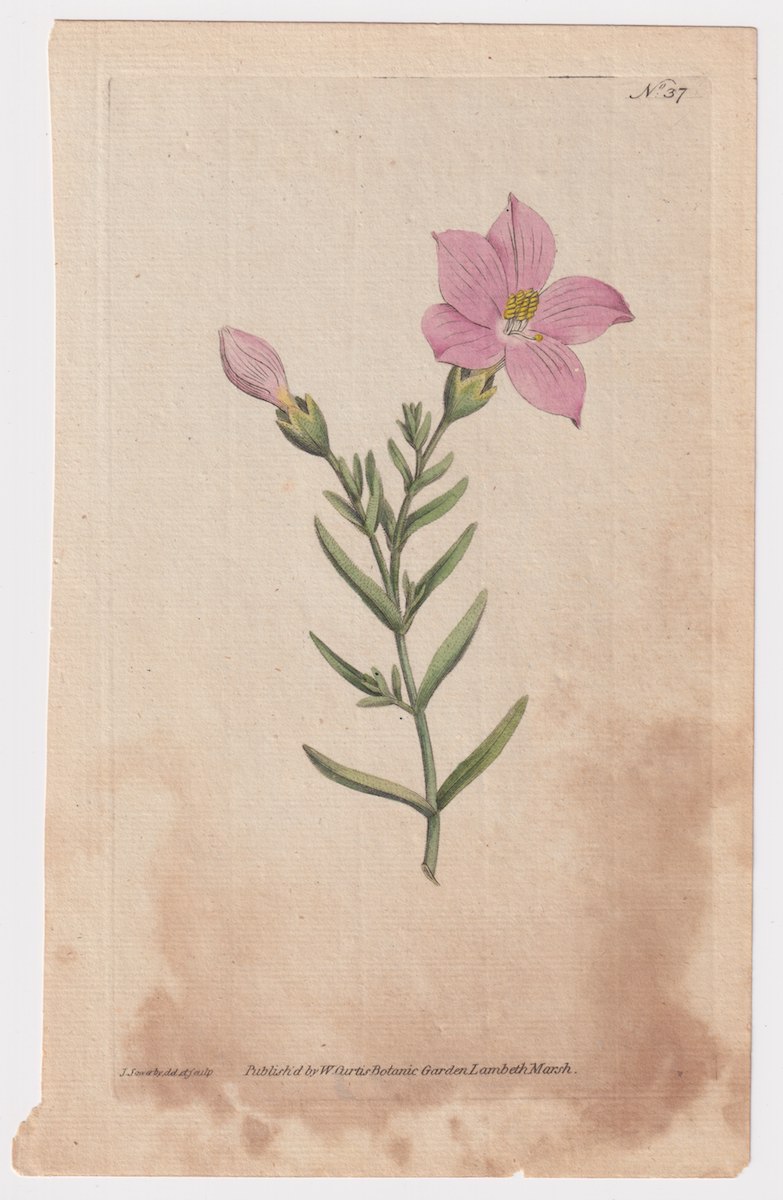 Antique Engraving Print, by W. Curtis, Botanic Garden, 1789, 22,5 x 13,8 cm.