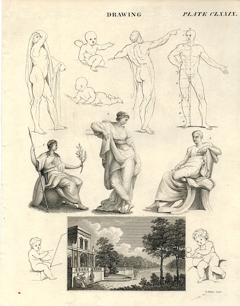 Antique Engraving Print by Wilson, Drawing, 1827, cm. 26,5 x 21.