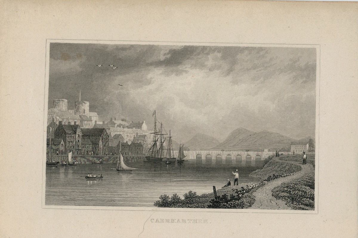 Antique Engraving Print, Caermarthen, 1831, credit Antiche Curiosità©