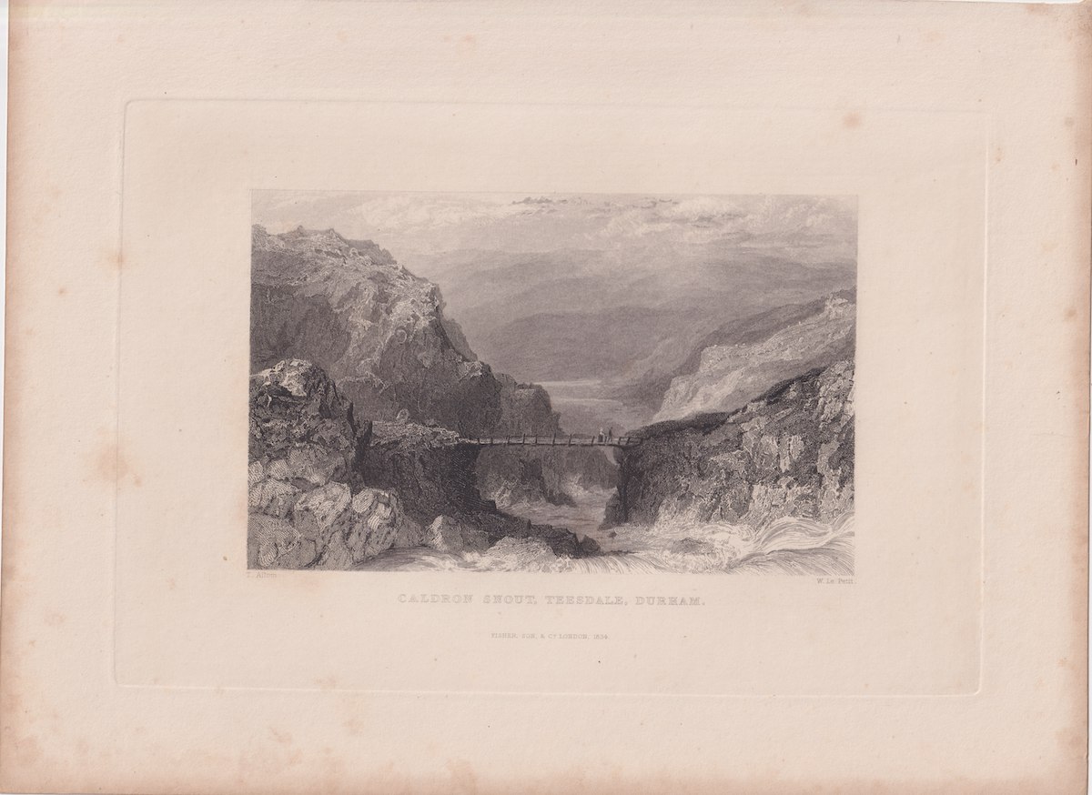 Antique Engraving Print, Caldron Snout, Teesdale, Durham, 1834, credit Antiche Curiosità©