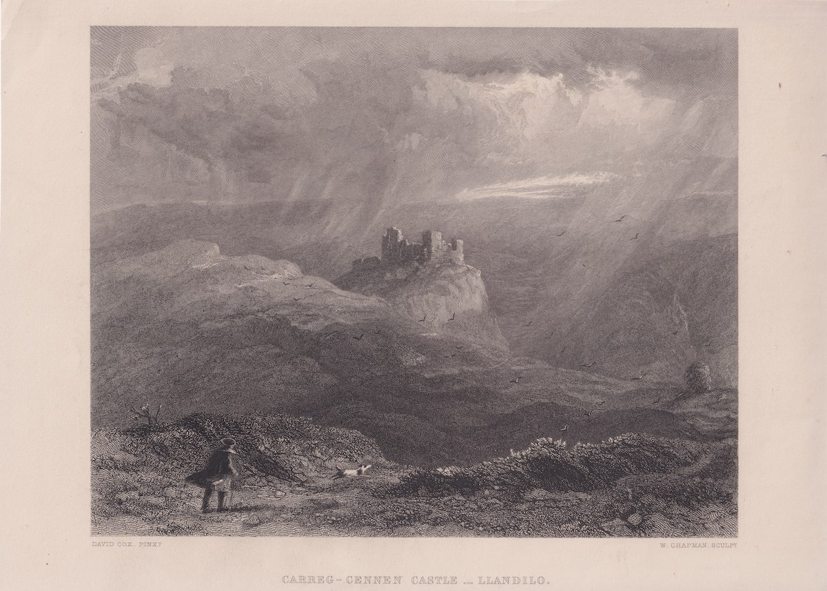 Antique Engraving Print, Carreg-Cennen Castle, Llandio, 1835, credit Antiche Curiosità©