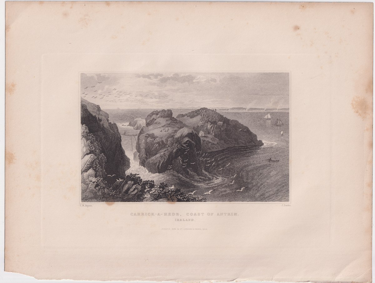 Antique Engraving Print, Carrick-A-Rede, Ireland, 1830, credit Antiche Curiosità©
