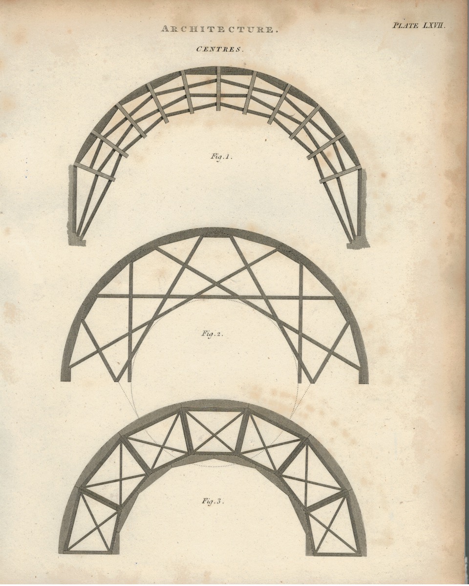 Antique Engraving Print, Centres, Architecture, 1805
