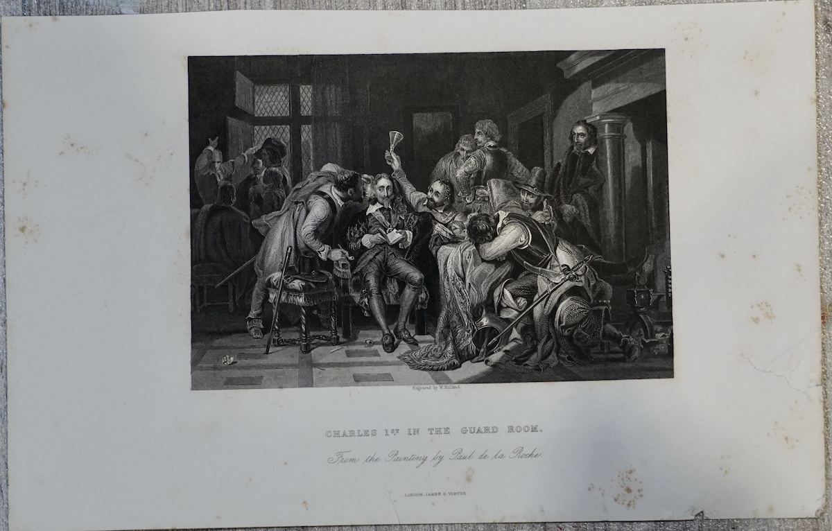 Antique Engraving print, Charles 1. in the guard room, 1850, 27 x 17.3 cm.