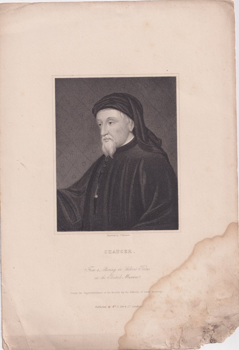 Antique Engraving Print, Chaucer, 1820, 27,5 x 18,9 cm.