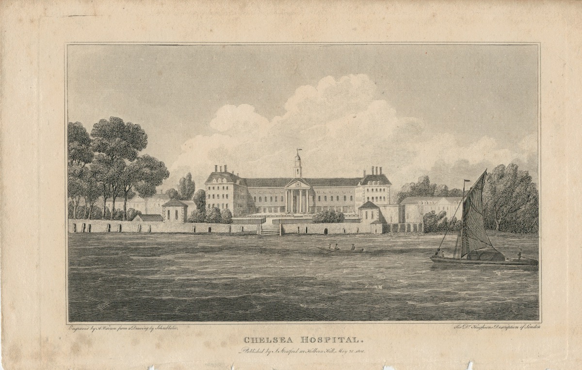 Antique Engraving Print, Chelsea Hospital, 1806, credit Antiche Curiosità©