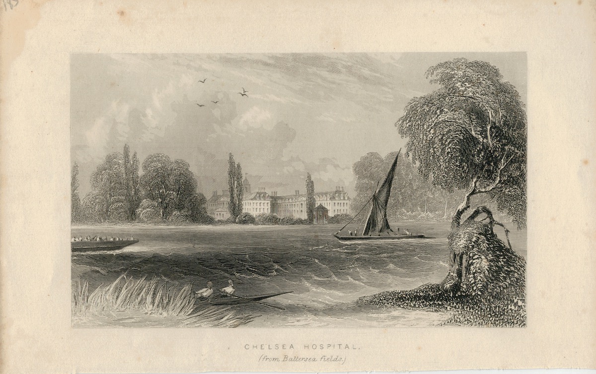 Antique Engraving Print, Chelsea Hospital, 1809, credit Antiche Curiosità©