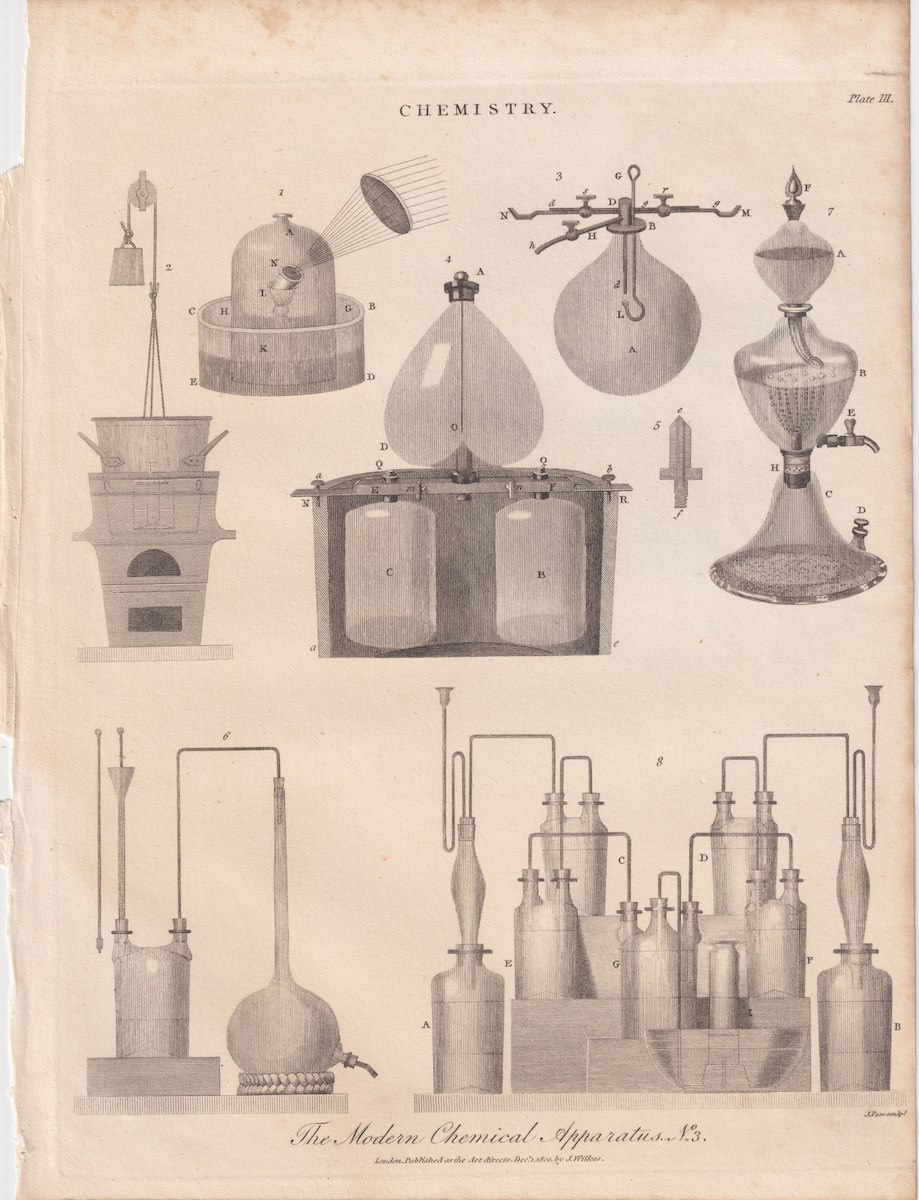 Antique Engraving Print, Chemistry, 1800, credit Antiche Curiosità©