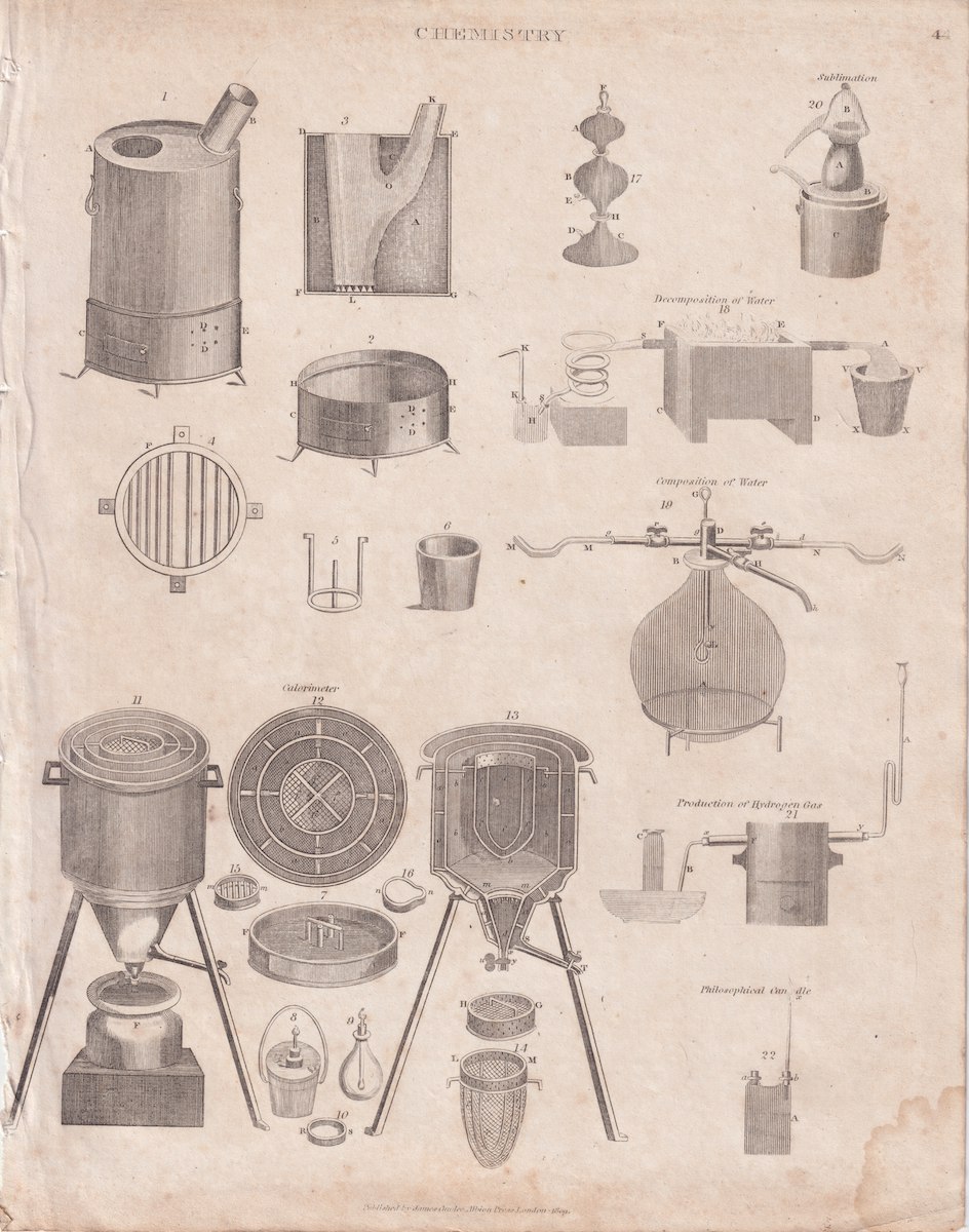 Antique Engraving Print, Chemistry, 1809, credit Antiche Curiosità©