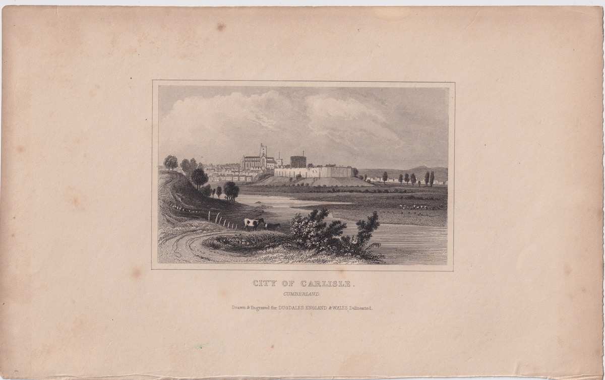 Antique Engraving Print, City of Carlisle, Cumberland, 1845, 22 x 13,7 cm. Dugdales.
