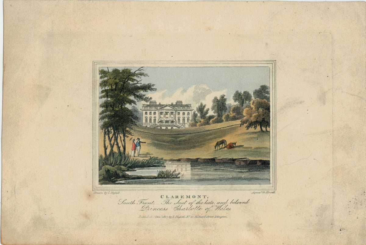 Antique Engraving Print, Claremont, South Front. The Seat of the late and beloved Princess Charlotte of Wales, published Dec. 1817 by Hafsell, drawn by Hafsell, cm. 18,5 x 12,5.