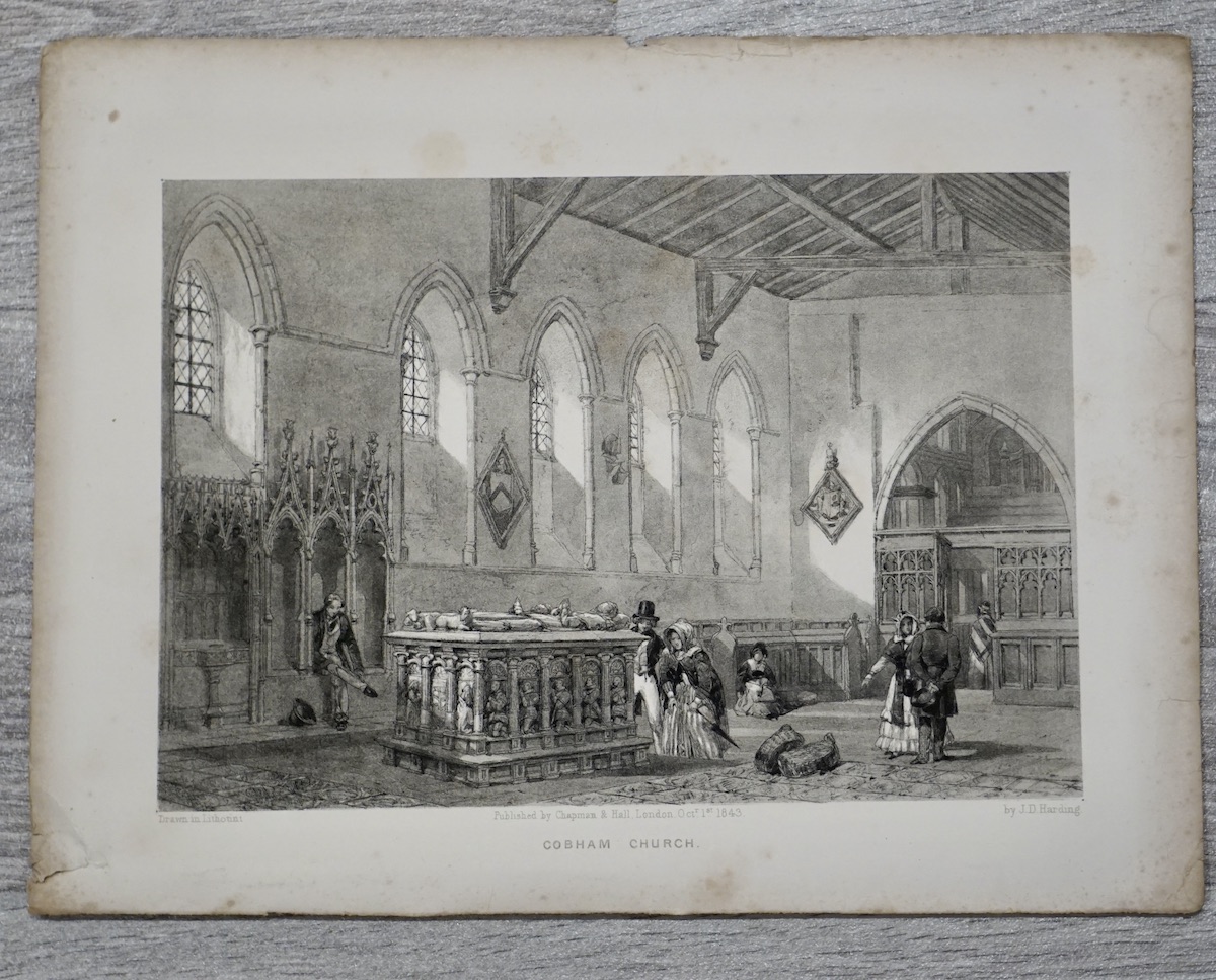 Antique Engraving Print, Cobham Church, 1843, 33.2 x 25.3 cm.