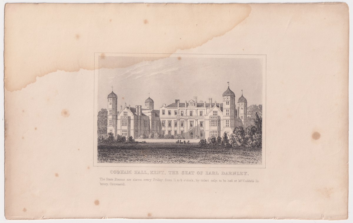 Antique Engraving Print, Cobham Hall, Kent, 1830 ca. credit Antiche Curiosità©