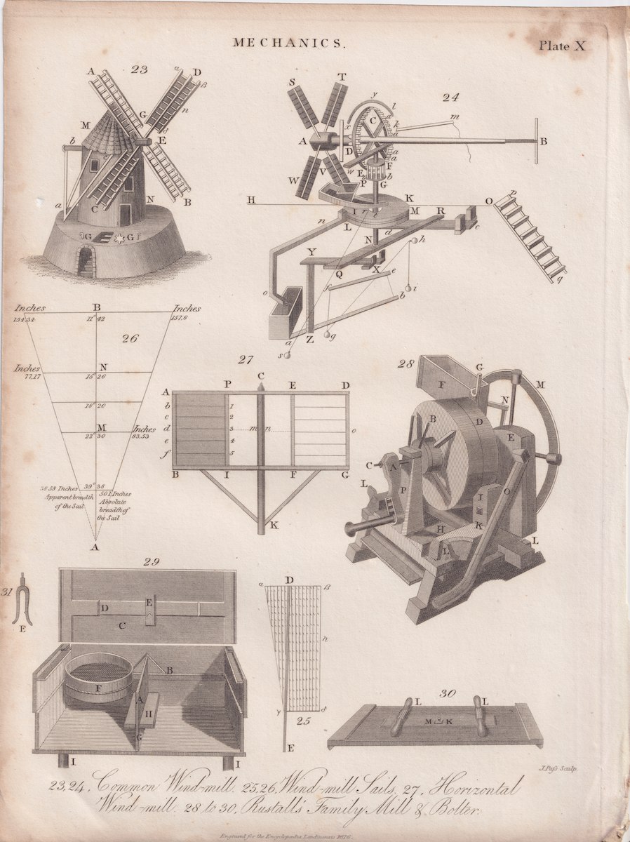 Antique Engraving Print, Common Windmill, 1816, credit Antiche Curiosità©