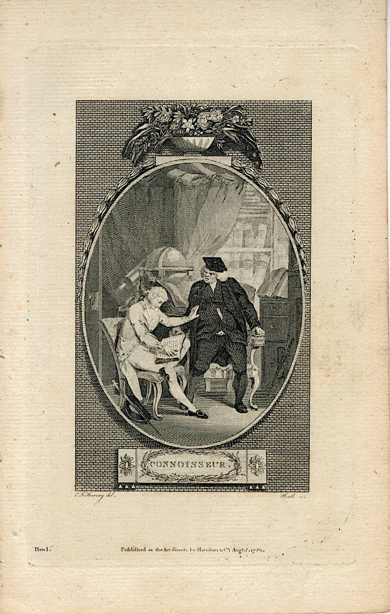 Rare Antique Engraving Print, Connoisseur, published as the Act directs by Harrison & Co. 5 August. 1786, cm. 21,2 x 13,2.