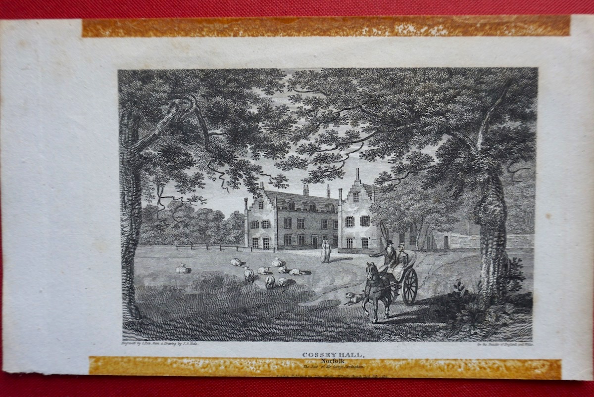 Antique Engraving Print, Cossey Hall, Norfolk, 1812, credit Antiche Curiosità©
